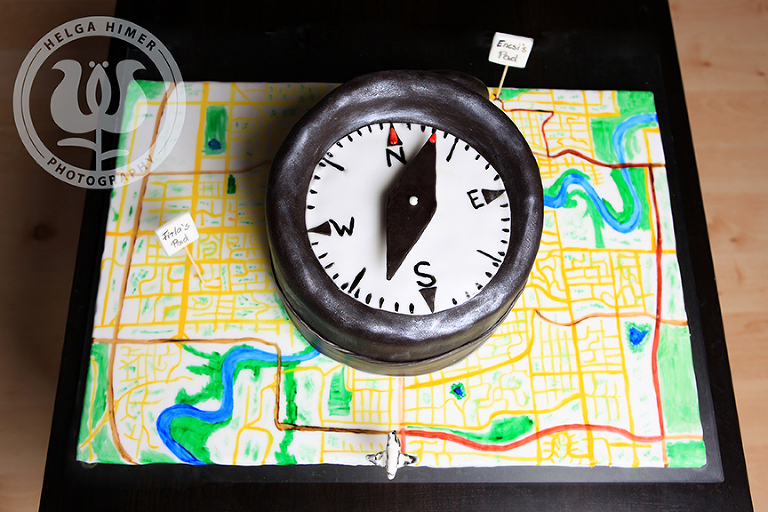 Map of Edmonton cake with compass for my friend who doesn’t know how to read maps.
